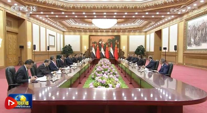 塞西表示,很高興來華進行國事訪問并出席中阿合作論壇第十屆部長級會議開幕式。當前世界正處于深刻復(fù)雜變化之中,中東地區(qū)深陷危機。埃方期待同中方進一步深化全面戰(zhàn)略伙伴關(guān)系,努力促進地區(qū)和平穩(wěn)定。埃方恪守一個中國原則,堅定支持中方在涉臺、涉港、涉藏、人權(quán)等核心利益問題上的立場,堅定支持中國實現(xiàn)國家完全統(tǒng)一。埃方歡迎更多中國企業(yè)赴埃投資合作,助力埃及制造業(yè)發(fā)展和工業(yè)化進程。希望以今年“埃中伙伴年”為契機,密切人文交流,加強兩國在信息通訊、人工智能、新能源、糧食安全、金融等方面合作。埃方贊賞習近平主席提出的系列全球倡議,愿同中方密切多邊協(xié)作,為人類和平進步作出積極貢獻。