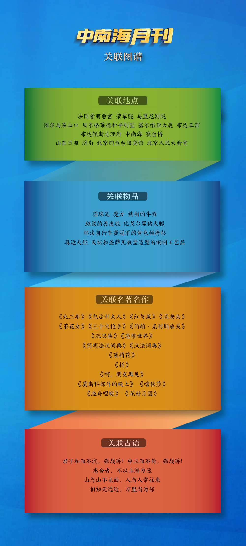 文明如水,為全球發(fā)展提供精神滋養(yǎng)。透過央視網“I學習”數據庫生成的關聯圖譜,一個個關聯地點、關聯物品、關聯名著名作等勾勒出清晰鮮明的文明互鑒印記。