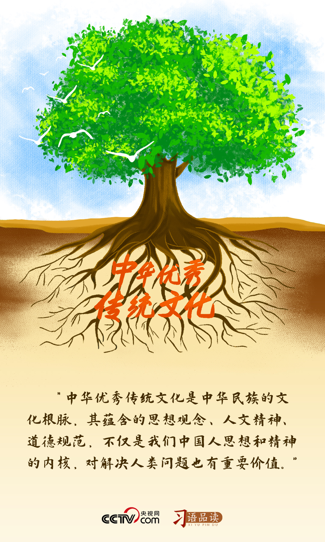 歷經(jīng)五千多年綿延發(fā)展,中華優(yōu)秀傳統(tǒng)文化已經(jīng)形成發(fā)達的根系。主根向土壤深處延伸,須根從主根上蔓延生出,并與主根緊密相連,展現(xiàn)出突出的統(tǒng)一性。