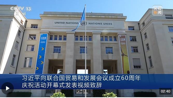 6月12日,國家主席習近平向聯(lián)合國貿(mào)易和發(fā)展會議成立60周年慶?;顒娱_幕式發(fā)表視頻致辭。