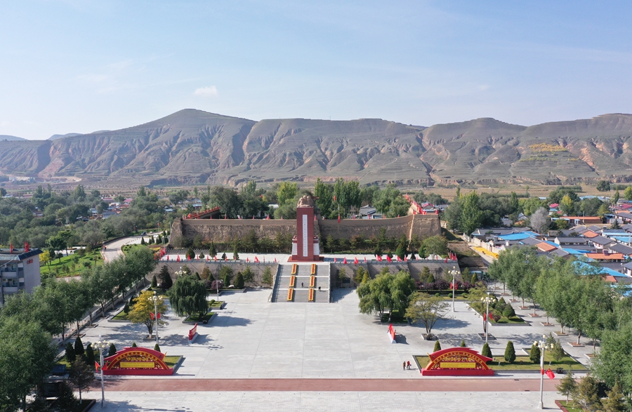 這是位于寧夏固原市西吉縣的將臺(tái)堡紅軍長(zhǎng)征會(huì)師紀(jì)念園(2021年10月18日攝,無人機(jī)照片)。新華社記者 盧鷹 攝