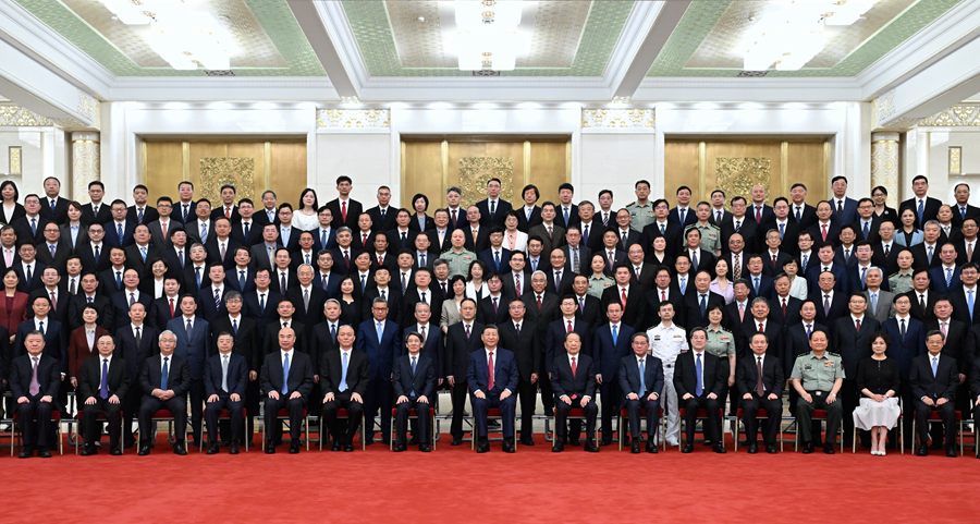 6月24日,全國科技大會、國家科學(xué)技術(shù)獎(jiǎng)勵(lì)大會和中國科學(xué)院第二十一次院士大會、中國工程院第十七次院士大會在北京人民大會堂隆重召開。會前,習(xí)近平等領(lǐng)導(dǎo)同志親切會見國家科學(xué)技術(shù)獎(jiǎng)獲獎(jiǎng)代表,并同大家合影留念。新華社記者 謝環(huán)馳 攝