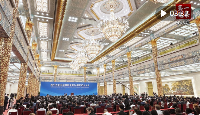 6月28日上午,和平共處五項原則發(fā)表70周年紀(jì)念大會在北京人民大會堂金色大廳隆重舉行。國家主席習(xí)近平出席紀(jì)念大會,并發(fā)表題為《弘揚(yáng)和平共處五項原則,攜手構(gòu)建人類命運(yùn)共同體》的重要講話。