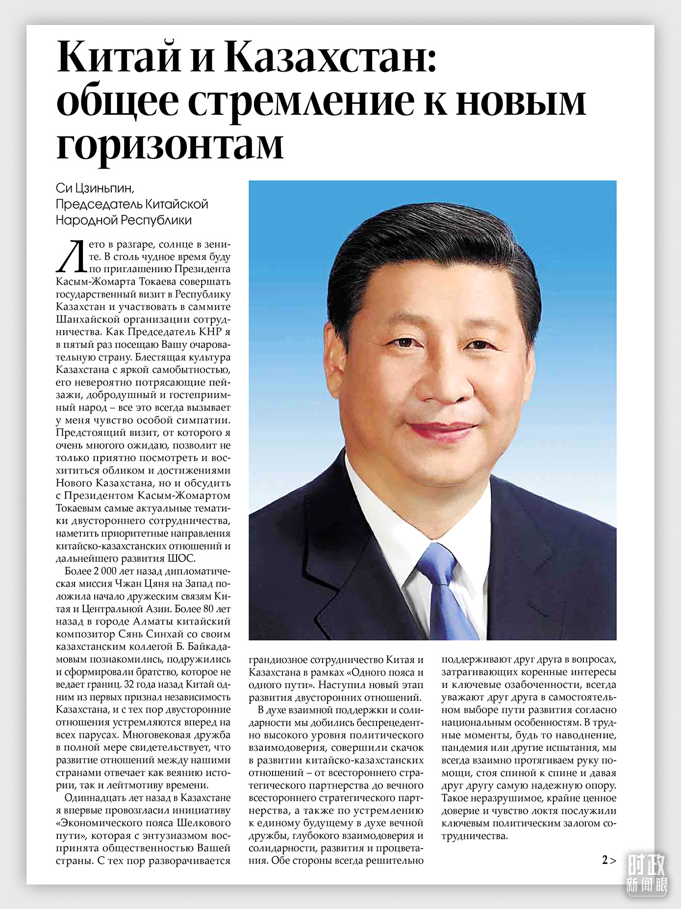 習近平主席在《哈薩克斯坦真理報》上發(fā)表的題為《同心篤行 續(xù)寫中哈關系新篇章》的署名文章。(總臺記者張譽耀提供)
