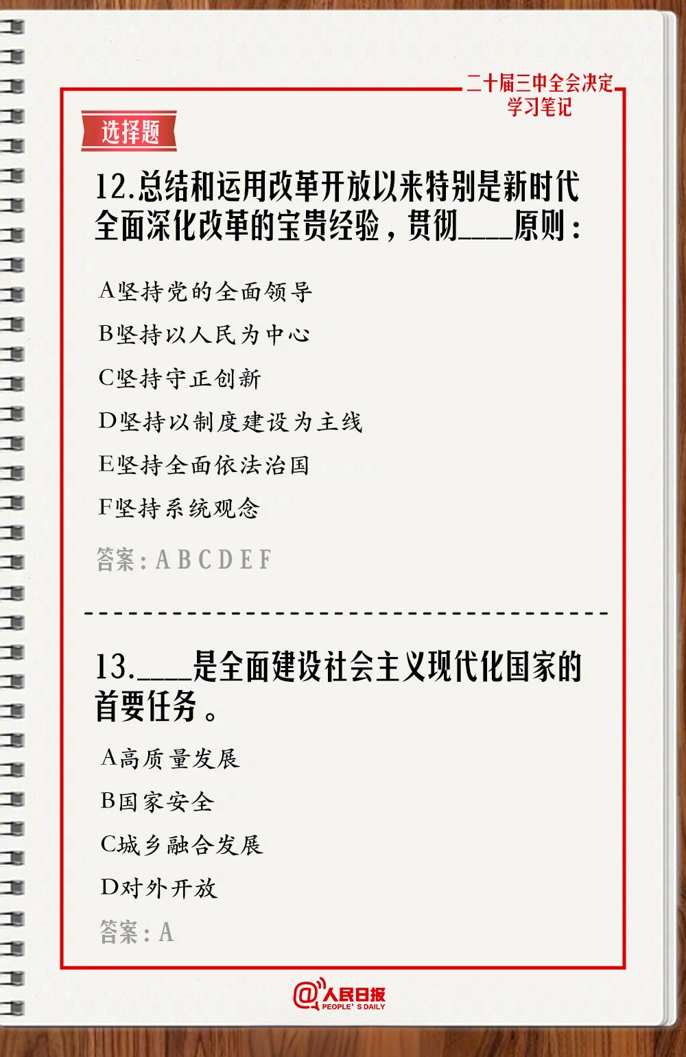 快來測一測!學習二十屆三中全會《決定》,一起答題