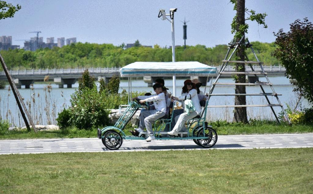 “我以前是大貨車駕駛員,全國各地跑運輸。聽說家鄉(xiāng)建了潘安湖景區(qū),我就來景區(qū)做了一名觀光車駕駛員?!苯K省徐州市賈汪區(qū)居民吳繼偉說,“現(xiàn)在的生活用我們當?shù)卦拋碇v就是——真好。”