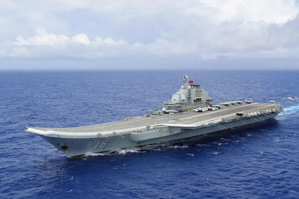 遼寧艦在某海域機動航行。