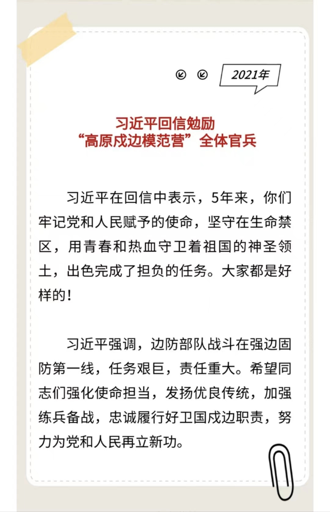 習(xí)主席給“強(qiáng)軍精武紅四連”全體官兵回信