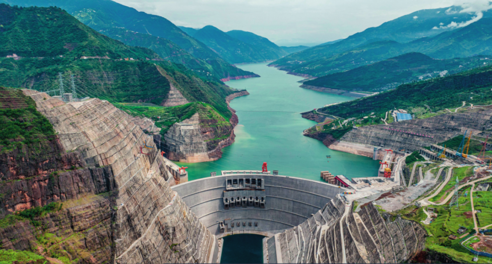 在云南省巧家縣和四川省寧南縣交界的金沙江峽谷中,上游而來的金沙江水被白鶴灘水電站大壩截住,“高峽出平湖”的景色蔚為壯觀。白鶴灘水電站年均發(fā)電量可達624億千瓦時,是金沙江峽谷中的“綠色引擎”之一。