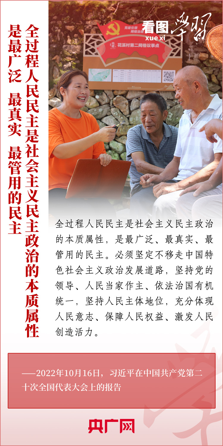 黨的二十屆三中全會(huì)明確提出,發(fā)展全過程人民民主是中國(guó)式現(xiàn)代化的本質(zhì)要求。黨的十八大以來,以習(xí)近平同志為核心的黨中央堅(jiān)持以人民為中心的發(fā)展思想,探索全鏈條、全方位、全覆蓋的全過程人民民主之路,不斷健全人民當(dāng)家作主的制度體系,擴(kuò)大人民有序政治參與。