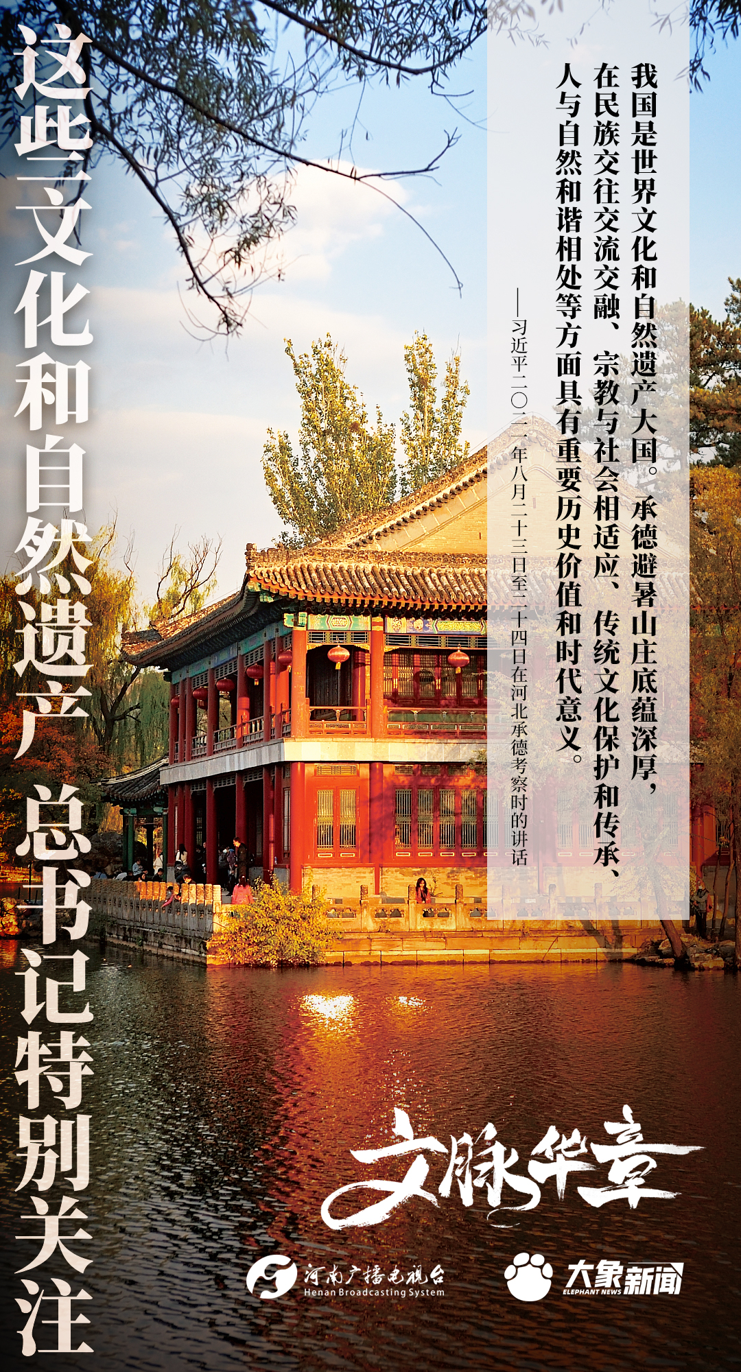 黨的十八大以來,習近平總書記對歷史文化遺產和自然遺產的保護、傳承、利用高度重視,進行了一系列考察調研,作出一系列重要講話重要指示。大象新聞為您梳理,邀您一起學習、領悟、踐行。