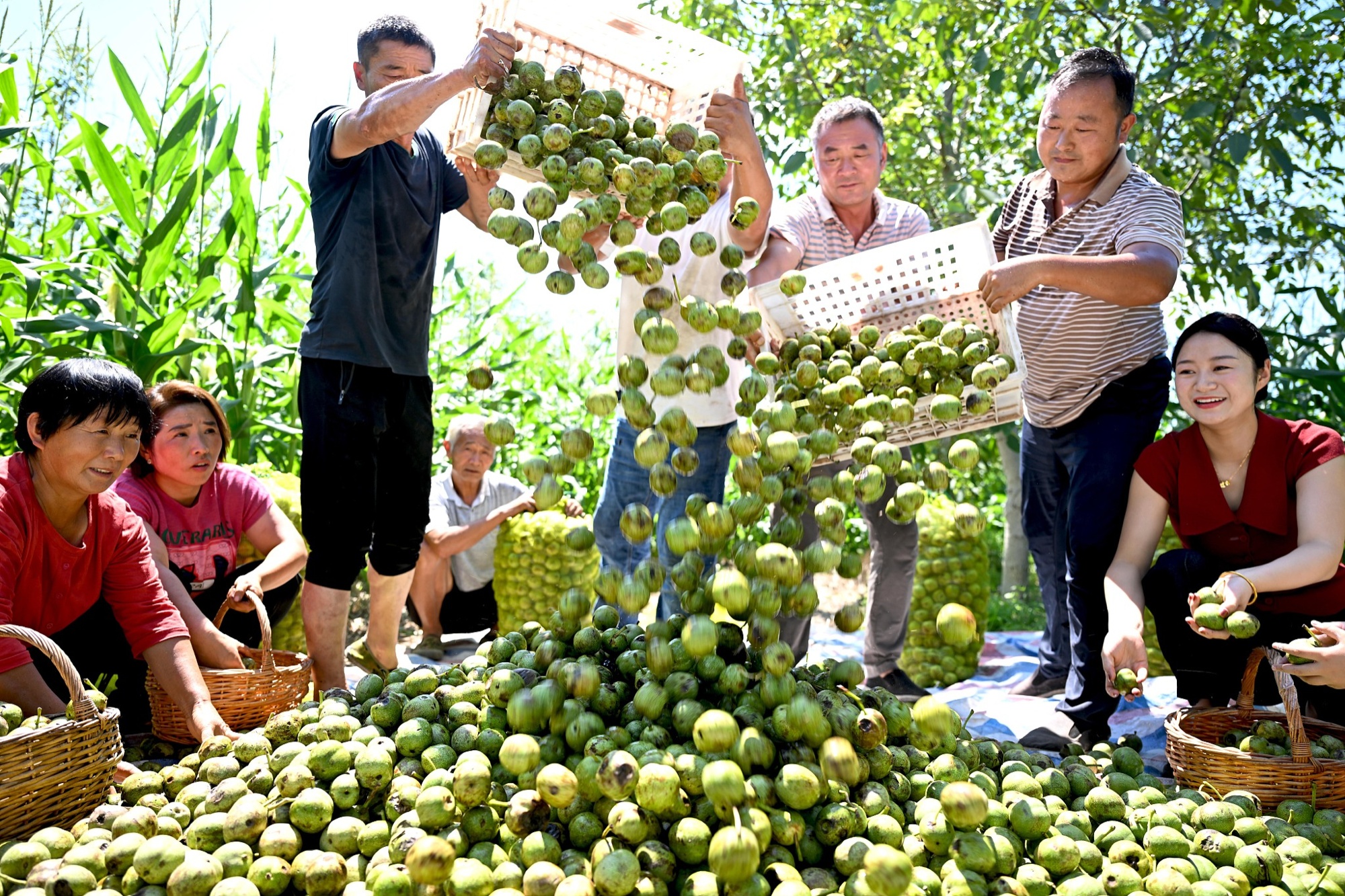 安徽省亳州市村民收獲鮮核桃