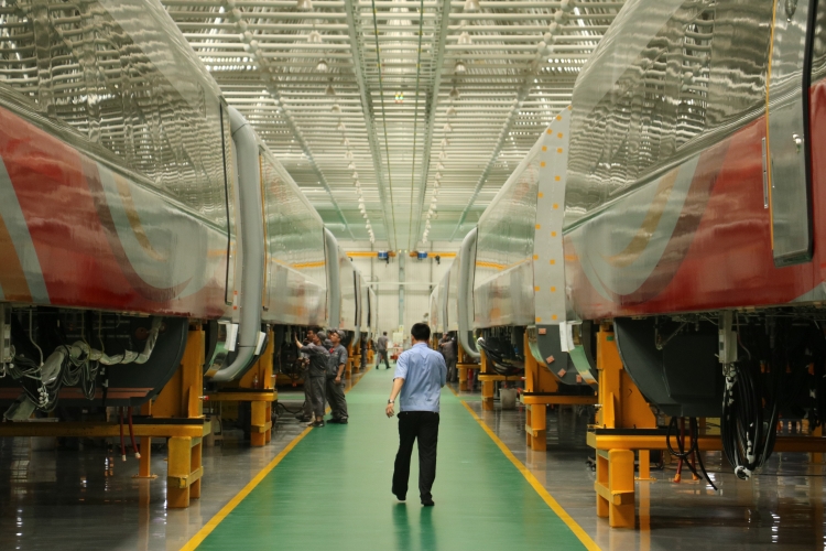 中車長客動(dòng)車組裝配產(chǎn)線。人民網(wǎng) 任佳暉 攝