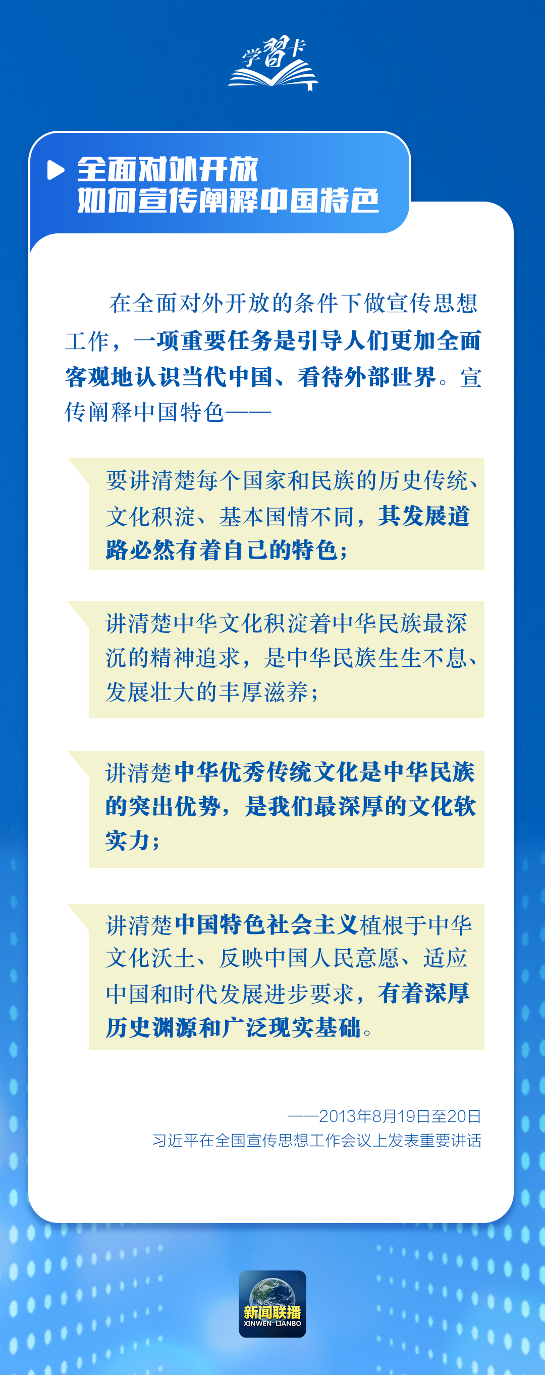 習近平總書記高度重視國際傳播能力建設,指出當前外宣工作處于歷史最好時期,同時也面臨最大壓力,強調要全面加強和改進國際傳播工作,深化文明交流互鑒,形成同我國綜合國力和國際地位相匹配的國際話語權,增強中華文明傳播力影響力。一起學習↓