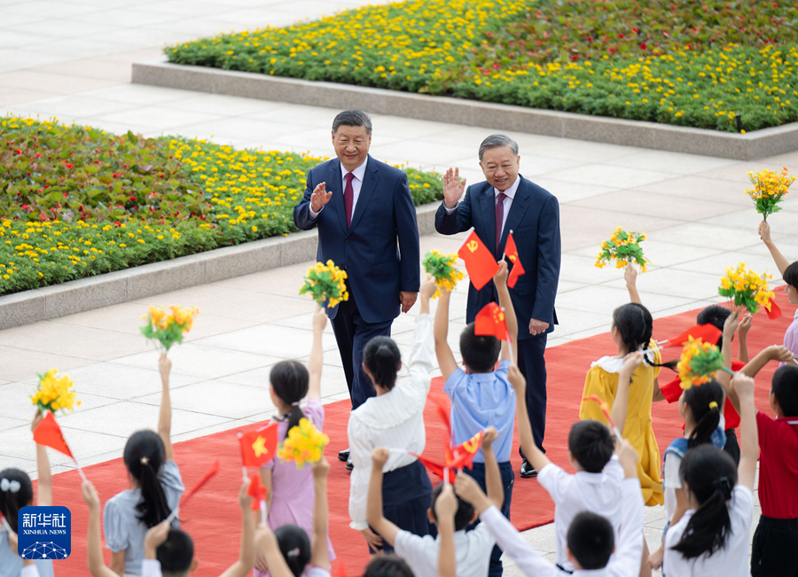 8月19日,中共中央總書記、國家主席習(xí)近平在北京人民大會堂同來華進(jìn)行國事訪問的越共中央總書記、國家主席蘇林舉行會談。這是會談前,習(xí)近平在人民大會堂東門外廣場為蘇林舉行歡迎儀式。新華社記者 姚大偉 攝