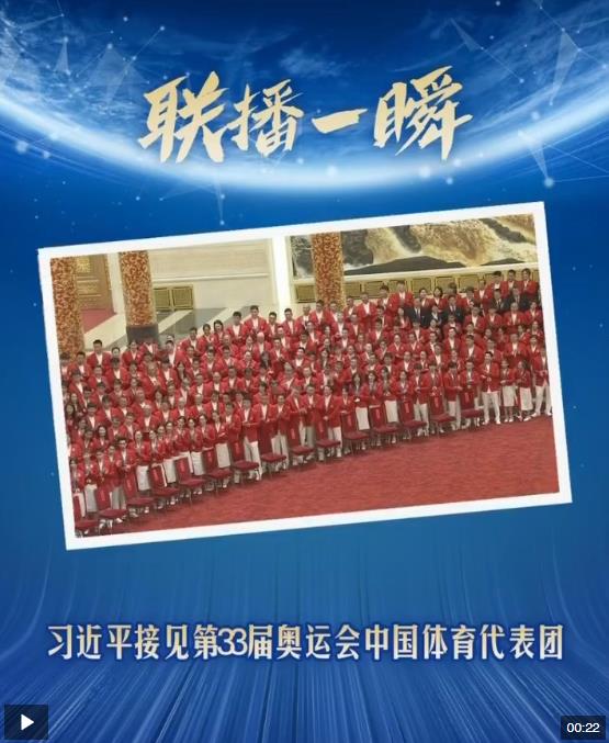 習近平20日下午在人民大會堂接見第33屆夏季奧林匹克運動會中國體育代表團全體成員。