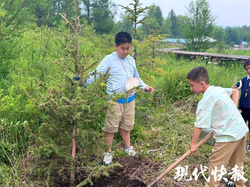 這樣的美麗風(fēng)景讓第一次來(lái)到大草原的周云昊很興奮?!拔覀儚漠?dāng)?shù)亓私獾剑@是一代又一代人努力的結(jié)果,讓我們也深切感受到生態(tài)保護(hù)的重要性?!毖袑W(xué)途中,周云昊和小伙伴們還專門在當(dāng)?shù)亓謭?chǎng)種下一棵樹?!跋M芙】甸L(zhǎng)大,成為守護(hù)綠色草原的小衛(wèi)士?!?/p>