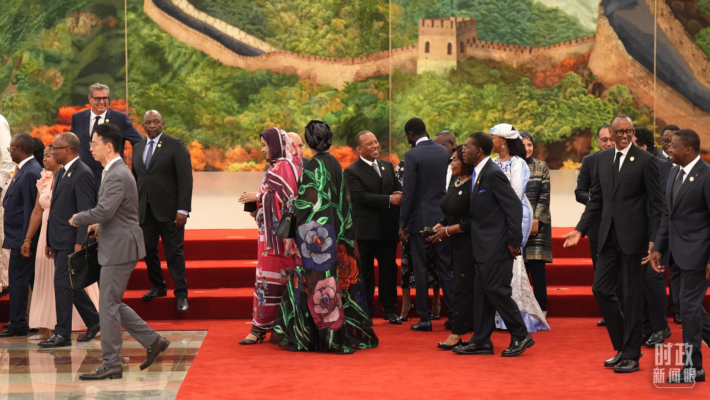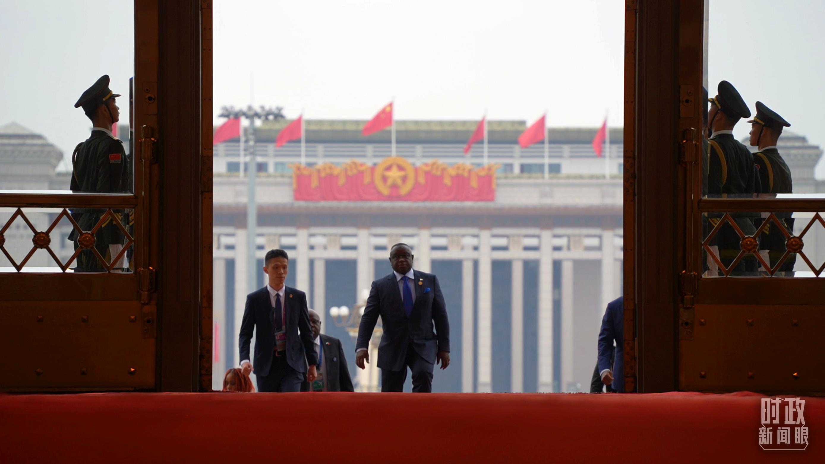 非洲國家領(lǐng)導(dǎo)人步入人民大會堂。(總臺央視記者趙怡彬拍攝)