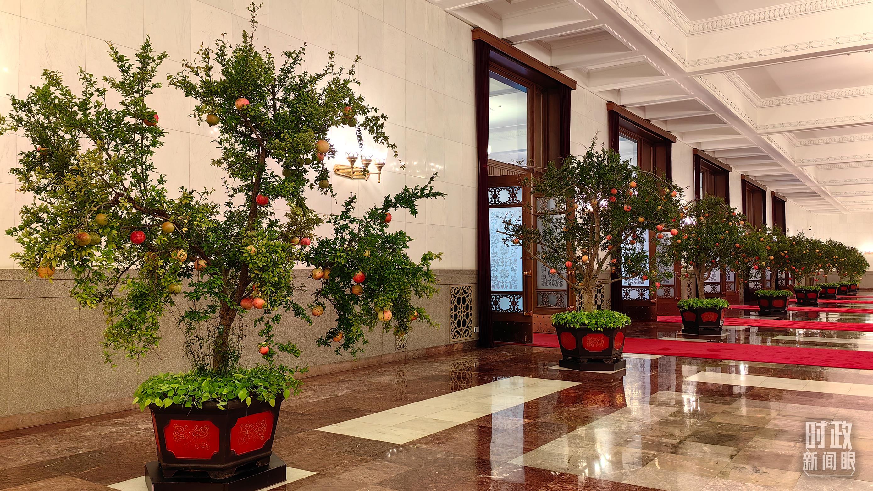 人民大會堂碩果累累的石榴盆栽。(總臺央視記者王曉東拍攝)