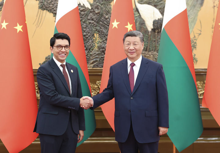 9月6日下午,國家主席習(xí)近平在北京人民大會(huì)堂會(huì)見來華出席中非合作論壇北京峰會(huì)的馬達(dá)加斯加總統(tǒng)拉喬利納。兩國元首宣布,將中馬關(guān)系提升為全面戰(zhàn)略合作伙伴關(guān)系。