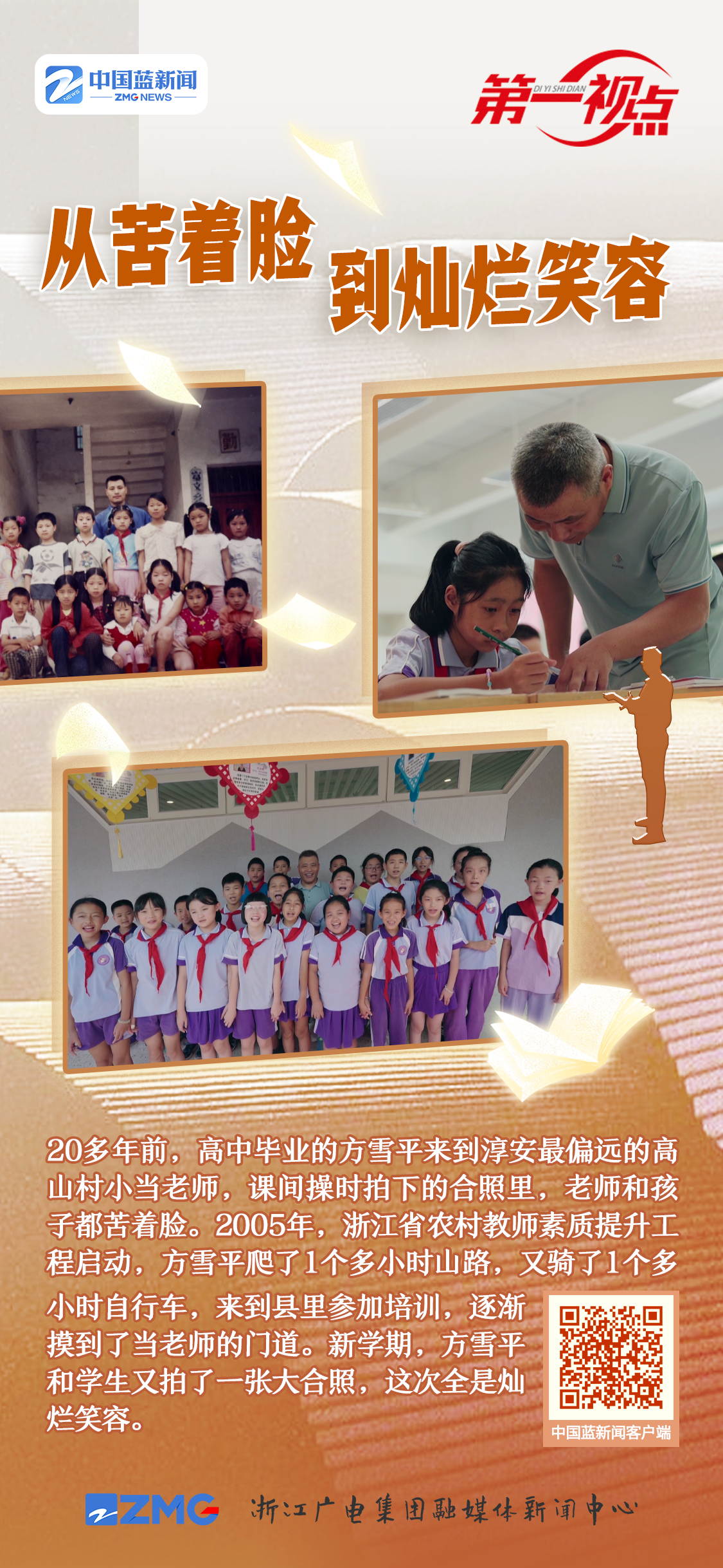 彼時(shí)的浙江,小學(xué)教師的學(xué)歷達(dá)標(biāo)率,在全國(guó)排位倒數(shù)。高中畢業(yè)的農(nóng)村老師方雪平,來到淳安最偏遠(yuǎn)的高山村小。一個(gè)人,要教兩個(gè)年級(jí)20多個(gè)孩子的全部科目。一次課間操時(shí),村小老師拍下的照片,無論是老師還是孩子,一個(gè)個(gè)都苦著臉。方雪平說:“當(dāng)時(shí)(上課時(shí))我心里是很緊張的,緊張到手心冒汗。外出培訓(xùn)的機(jī)會(huì)幾乎是沒有的,自己慢慢去摸索唄。”