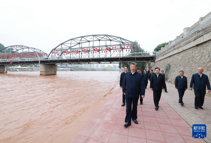 9月10日至13日,中共中央總書記、國家主席、中央軍委主席習(xí)近平在甘肅考察。這是11日下午,習(xí)近平在黃河蘭州中山橋段考察。新華社記者 鞠鵬 攝