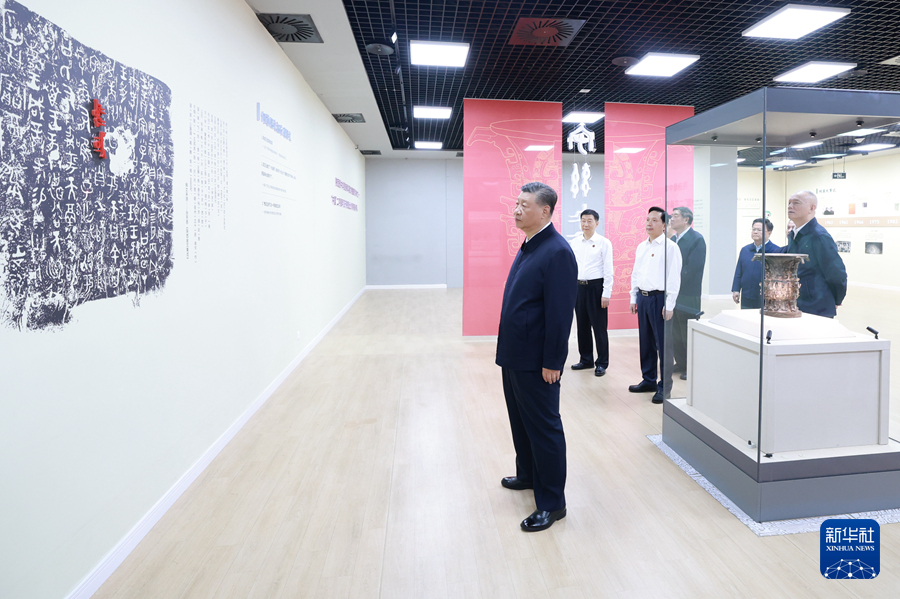 9月10日,中共中央總書記、國家主席、中央軍委主席習(xí)近平在前往甘肅考察途中,來到陜西省寶雞市參觀寶雞青銅器博物院。新華社記者 鞠鵬 攝