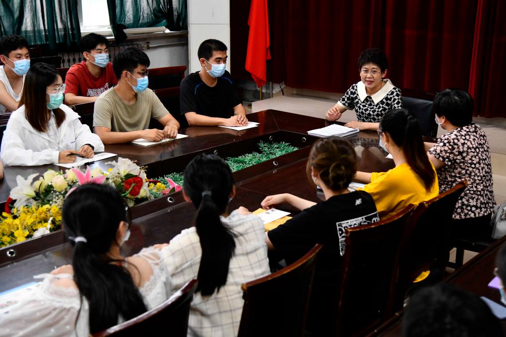 2020年6月16日,在山東濰坊學(xué)院法學(xué)院,全國人大代表高明芹在宣講《民法典》相關(guān)內(nèi)容。 新華社記者 郭緒雷 攝