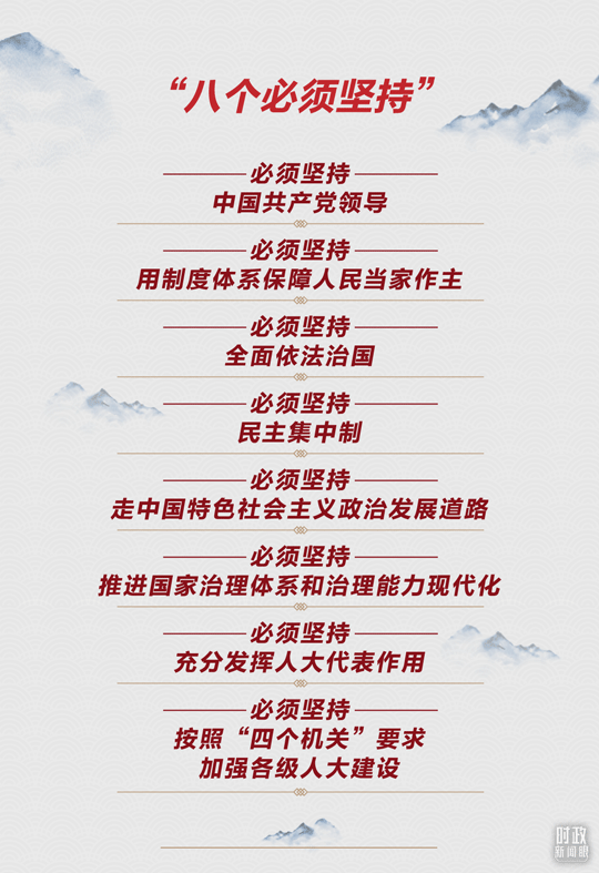在今年這次大會上,總書記用“八個必須堅(jiān)持”系統(tǒng)總結(jié)新時代人民代表大會制度理論和實(shí)踐創(chuàng)新重大成果。