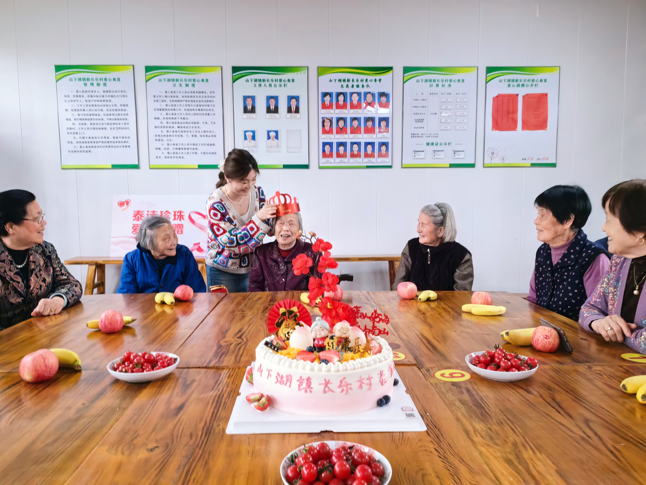 諸暨市山下湖鎮(zhèn)新長樂村“愛心食堂”開展集體生日會活動。諸暨市委宣傳部供圖