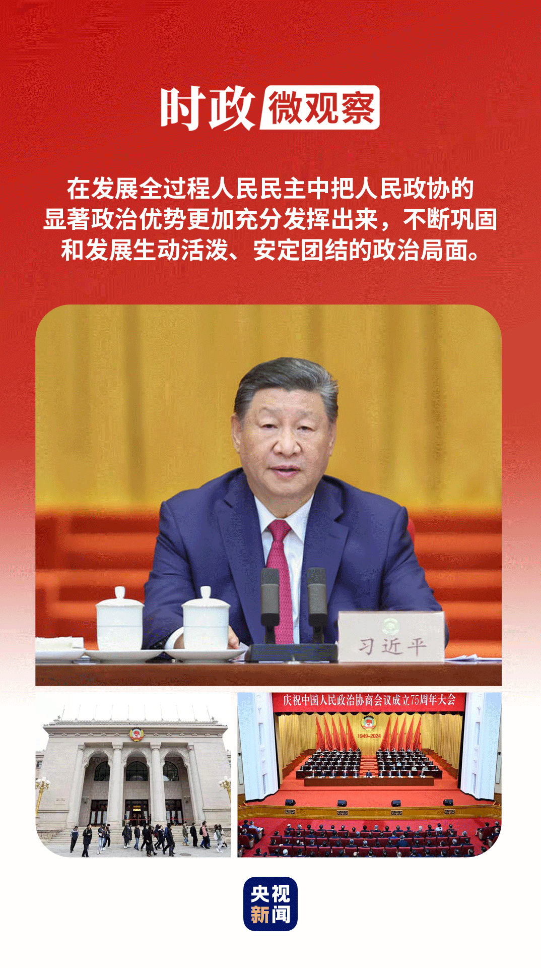2024年9月20日,全國(guó)政協(xié)禮堂,中共中央、全國(guó)政協(xié)隆重舉行慶祝中國(guó)人民政治協(xié)商會(huì)議成立75周年大會(huì)。在大會(huì)上,習(xí)近平總書記高度評(píng)價(jià)人民政協(xié)的歷史貢獻(xiàn),提出新時(shí)代人民政協(xié)“十個(gè)堅(jiān)持”的原則,深刻闡述人民政協(xié)的鮮明中國(guó)特色和顯著政治優(yōu)勢(shì),對(duì)不斷推進(jìn)協(xié)商民主廣泛多層制度化發(fā)展提出明確要求,對(duì)做好當(dāng)前和今后一個(gè)時(shí)期人民政協(xié)工作作出全面部署。