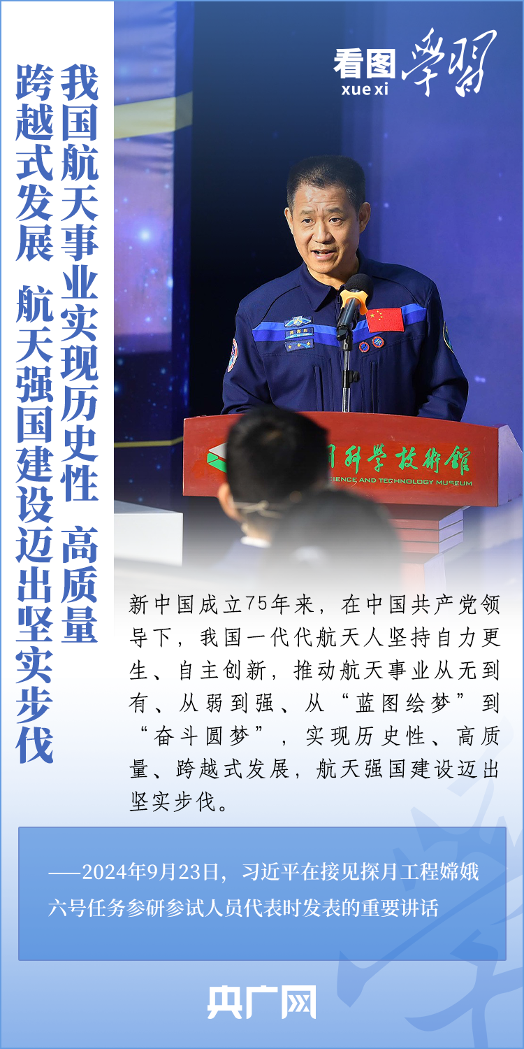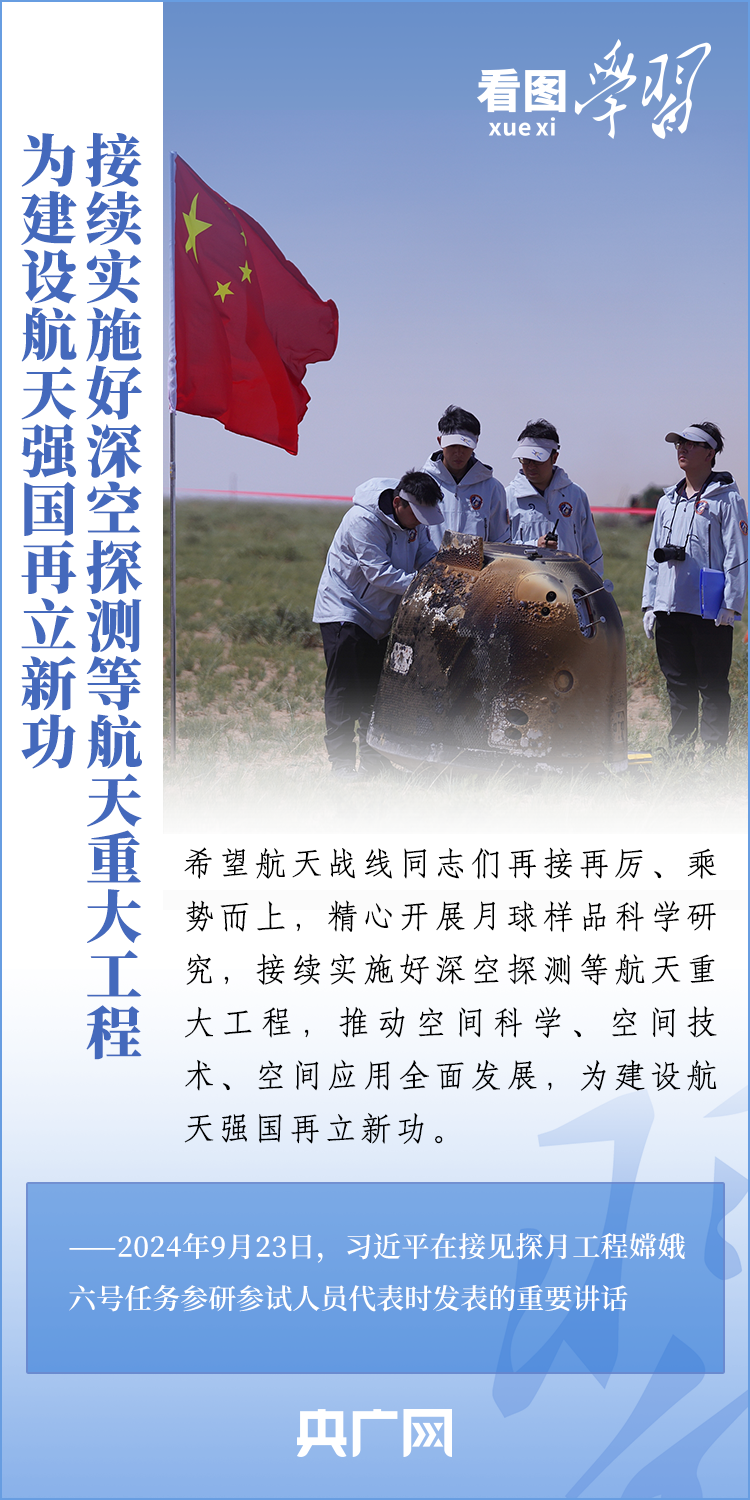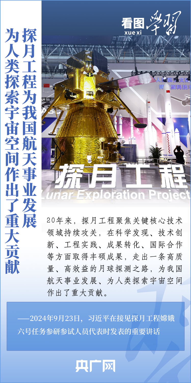 中國(guó)探月工程成果凝結(jié)著我國(guó)幾代航天人的智慧和心血。9月23日,習(xí)近平總書(shū)記接見(jiàn)探月工程嫦娥六號(hào)任務(wù)參研參試人員代表并發(fā)表重要講話。總書(shū)記高度肯定嫦娥六號(hào)任務(wù)成功的重要意義,以及探月工程為我國(guó)航天事業(yè)發(fā)展、為人類探索宇宙空間作出的重大貢獻(xiàn),勉勵(lì)航天戰(zhàn)線工作者再接再厲、乘勢(shì)而上,為建設(shè)航天強(qiáng)國(guó)再立新功。一起來(lái)學(xué)習(xí)!