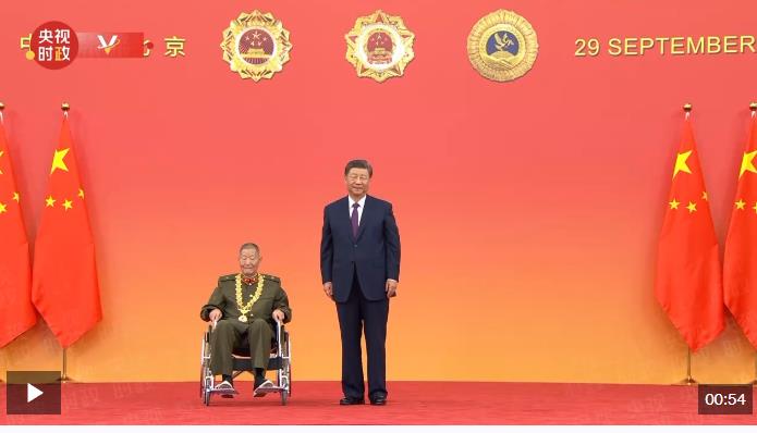 中華人民共和國國家勛章和國家榮譽稱號頒授儀式于9月29日上午10時在人民大會堂隆重舉行。中共中央總書記、國家主席、中央軍委主席習近平向“共和國勛章”獲得者黃宗德頒授勛章。