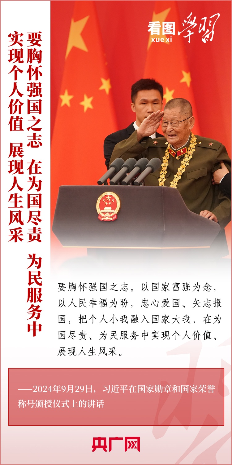 9月29日,中華人民共和國國家勛章和國家榮譽稱號頒授儀式在北京舉行,習(xí)近平總書記向國家勛章和國家榮譽稱號獲得者頒授勛章獎?wù)虏l(fā)表重要講話??倳洀?qiáng)調(diào),全黨全國各族人民要以英雄模范為榜樣,團(tuán)結(jié)奮進(jìn)、砥礪前行,匯聚起共襄強(qiáng)國盛舉的磅礴力量。一起來學(xué)習(xí)!