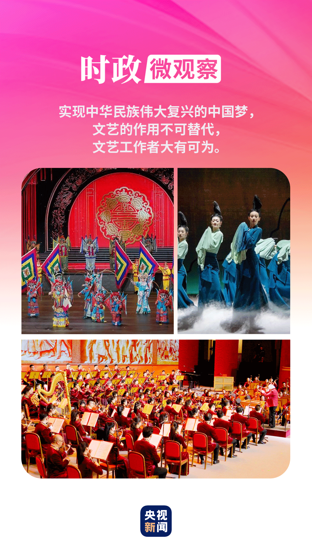 10年來,廣大文藝工作者牢記囑托,積極投身新時代中國特色社會主義偉大實(shí)踐,傾情服務(wù)人民,傾心創(chuàng)作精品,奏響一曲曲蕩氣回腸的時代之聲、愛國之聲、人民之聲,為中華民族偉大復(fù)興凝聚起磅礴精神偉力。