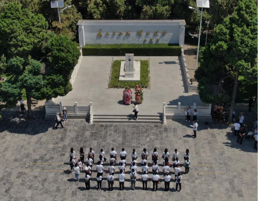 2021年6月24日,參觀者在位于河南省蘭考縣的焦裕祿紀(jì)念園瞻仰焦裕祿烈士墓(無(wú)人機(jī)照片)。新華社記者 李安 攝