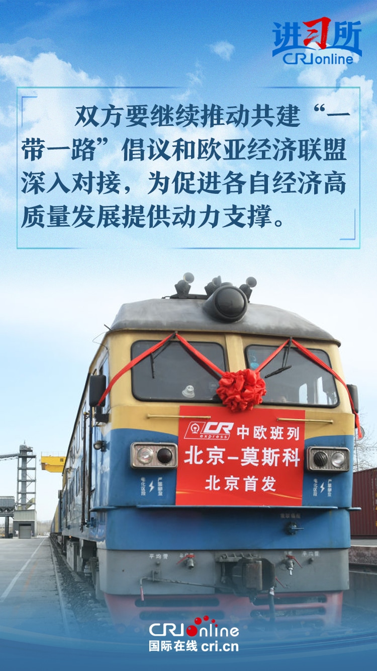 習(xí)近平主席在同俄羅斯總統(tǒng)普京會晤時指出,中俄世代友好的深厚情誼不會變,濟(jì)世為民的大國擔(dān)當(dāng)不會變。雙方要繼續(xù)推動共建“一帶一路”倡議和歐亞經(jīng)濟(jì)聯(lián)盟深入對接,為促進(jìn)各自經(jīng)濟(jì)高質(zhì)量發(fā)展提供動力支撐。
