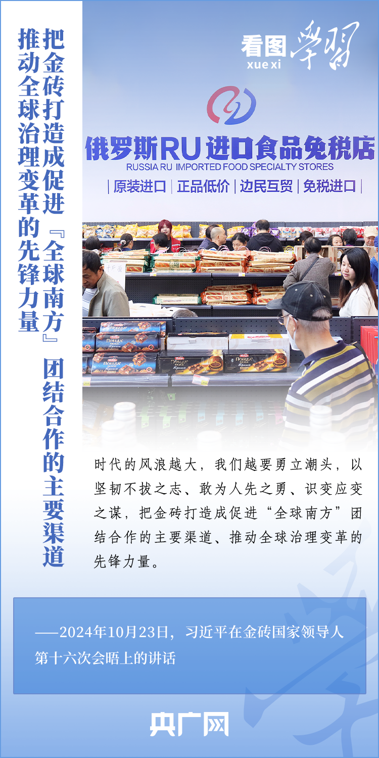 當(dāng)?shù)貢r(shí)間10月23日,國家主席習(xí)近平在俄羅斯喀山出席金磚國家領(lǐng)導(dǎo)人第十六次會晤并發(fā)表重要講話。習(xí)主席深刻闡述推動(dòng)“大金磚合作”高質(zhì)量發(fā)展的中國主張,就金磚大家庭發(fā)展合作提出五點(diǎn)務(wù)實(shí)舉措,表達(dá)了中方愿同金磚各國一道,攜手更多“全球南方”國家共同推動(dòng)構(gòu)建人類命運(yùn)共同體的真誠愿望。一起來學(xué)習(xí)!