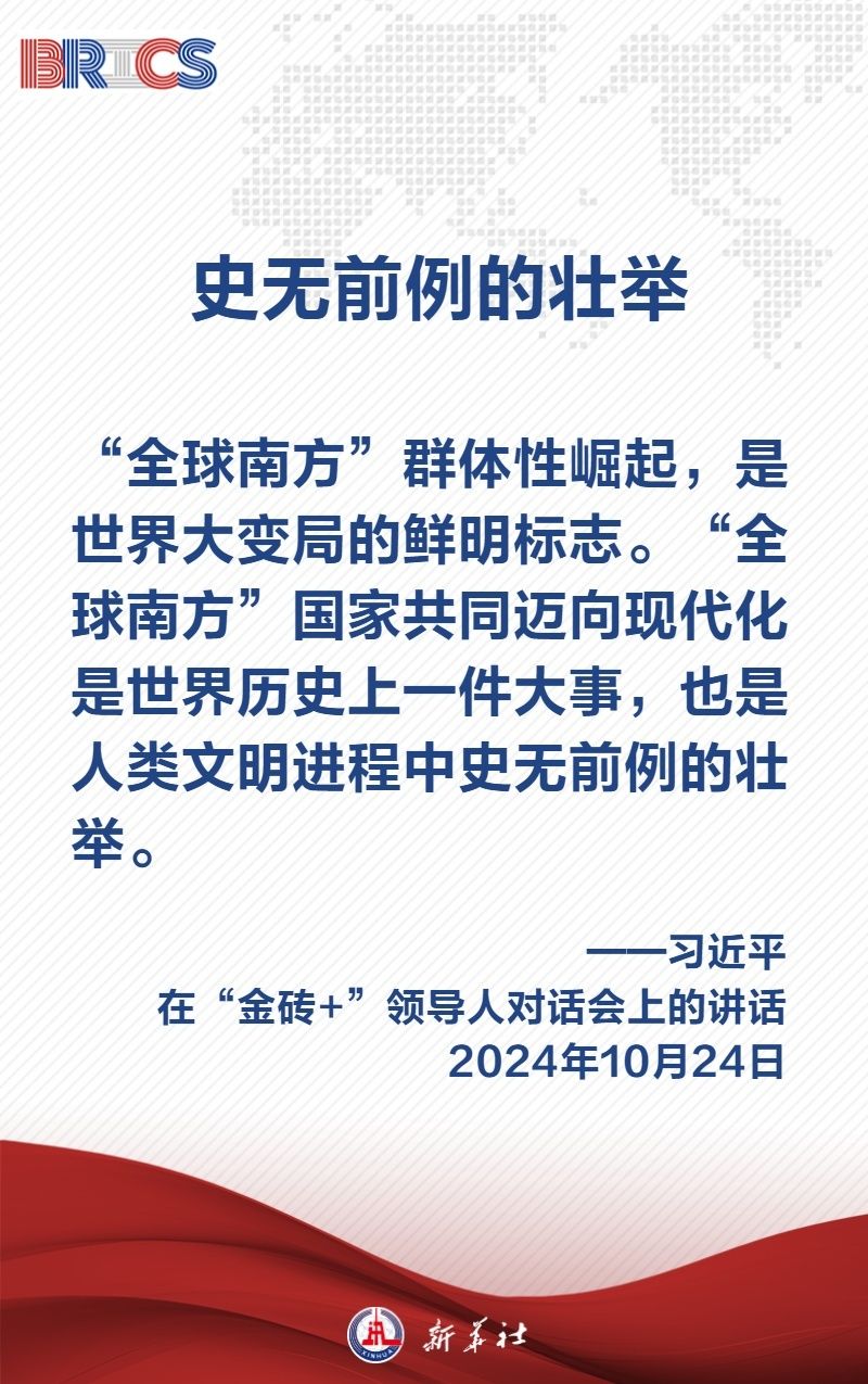 當(dāng)?shù)貢r(shí)間10月24日上午,國家主席習(xí)近平在喀山會(huì)展中心出席“金磚+”領(lǐng)導(dǎo)人對話會(huì)并發(fā)表題為《匯聚“全球南方”磅礴力量 共同推動(dòng)構(gòu)建人類命運(yùn)共同體》的重要講話,闡明中國主張——