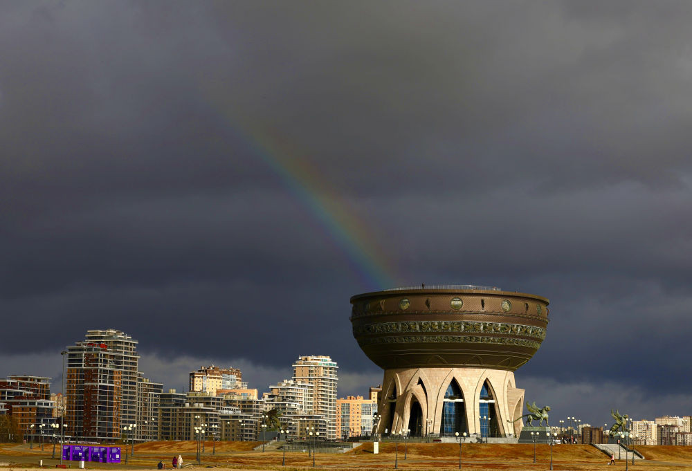 坐落在喀山市中心的地標(biāo)建筑“家庭中心”形似一口大鍋,是新人登記結(jié)婚的地方,其獨(dú)特的外形契合了韃靼人對婚姻和家庭的理念:只要在一口鍋里吃飯就是一家人。