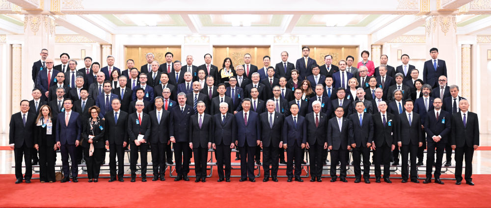 11月8日晚,習(xí)近平主席在北京同意大利總統(tǒng)馬塔雷拉共同會見出席中意文化合作機(jī)制大會和中意大學(xué)校長對話會的雙方代表。這是會見前,兩國元首同雙方代表合影留念。新華社記者 申宏 攝