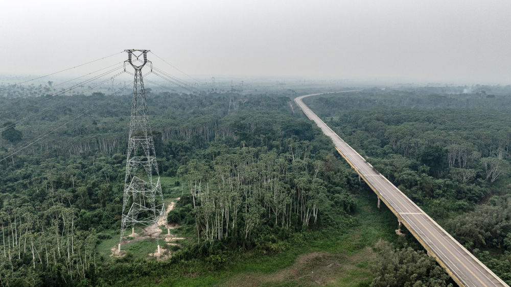 這張9月13日拍攝的照片顯示,在巴西朗多尼亞州,EDP輸變電項(xiàng)目線路穿越熱帶雨林(無(wú)人機(jī)照片)。巴西EDP輸變電項(xiàng)目是位于巴西北部的阿克里州和朗多尼亞州的綠地輸變電工程,山東電建一公司承擔(dān)了該項(xiàng)目的EPC總承包任務(wù)。新華社記者王天聰攝