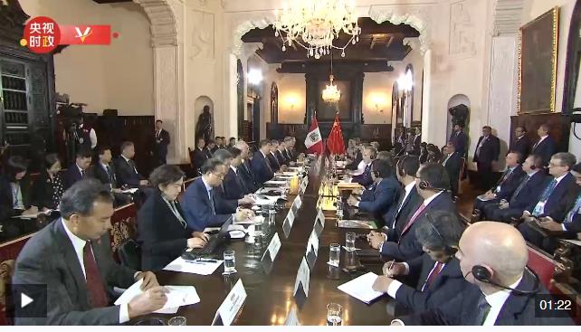 當(dāng)?shù)貢r間11月14日下午,國家主席習(xí)近平在利馬總統(tǒng)府同秘魯總統(tǒng)博魯阿爾特舉行會談。