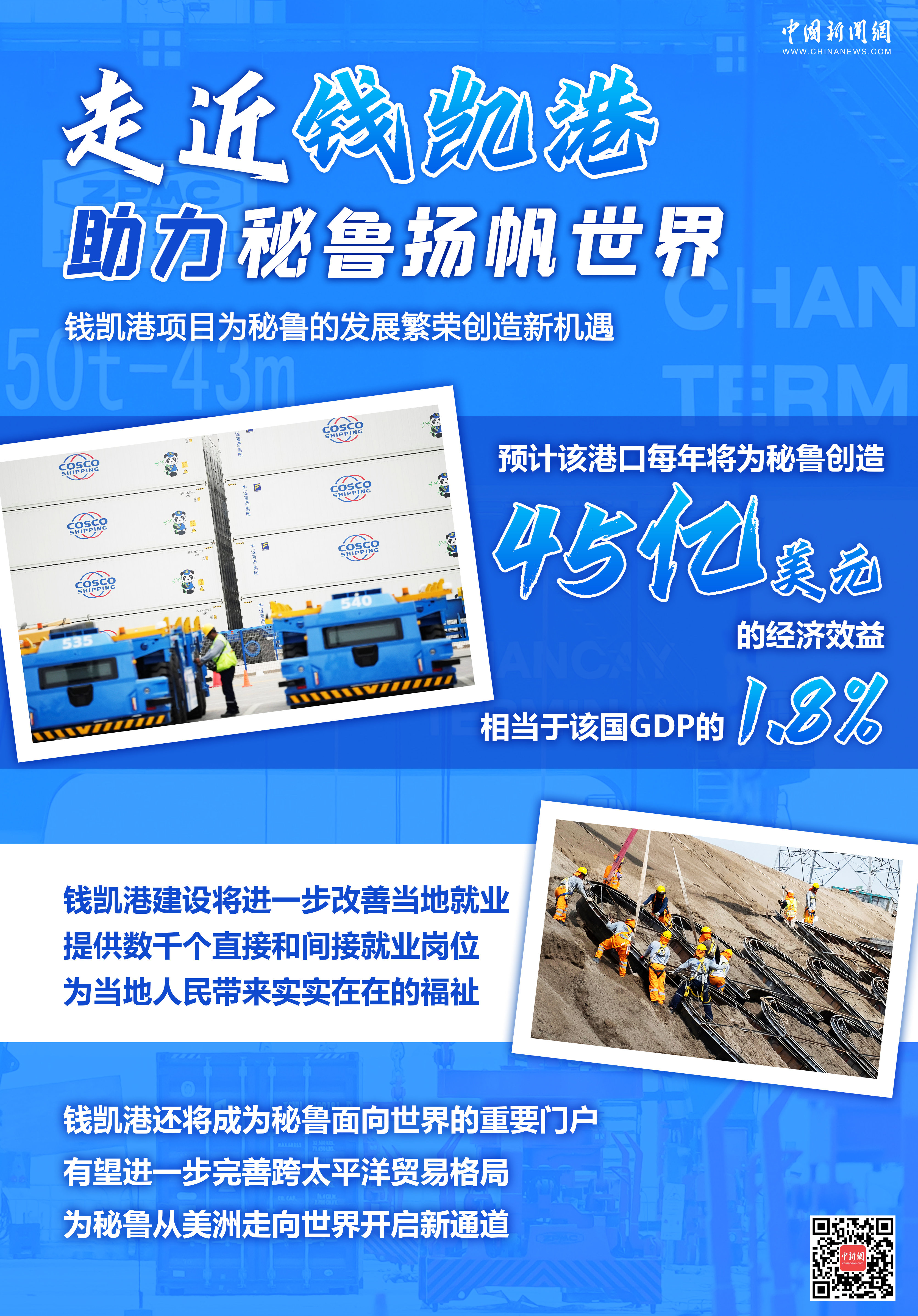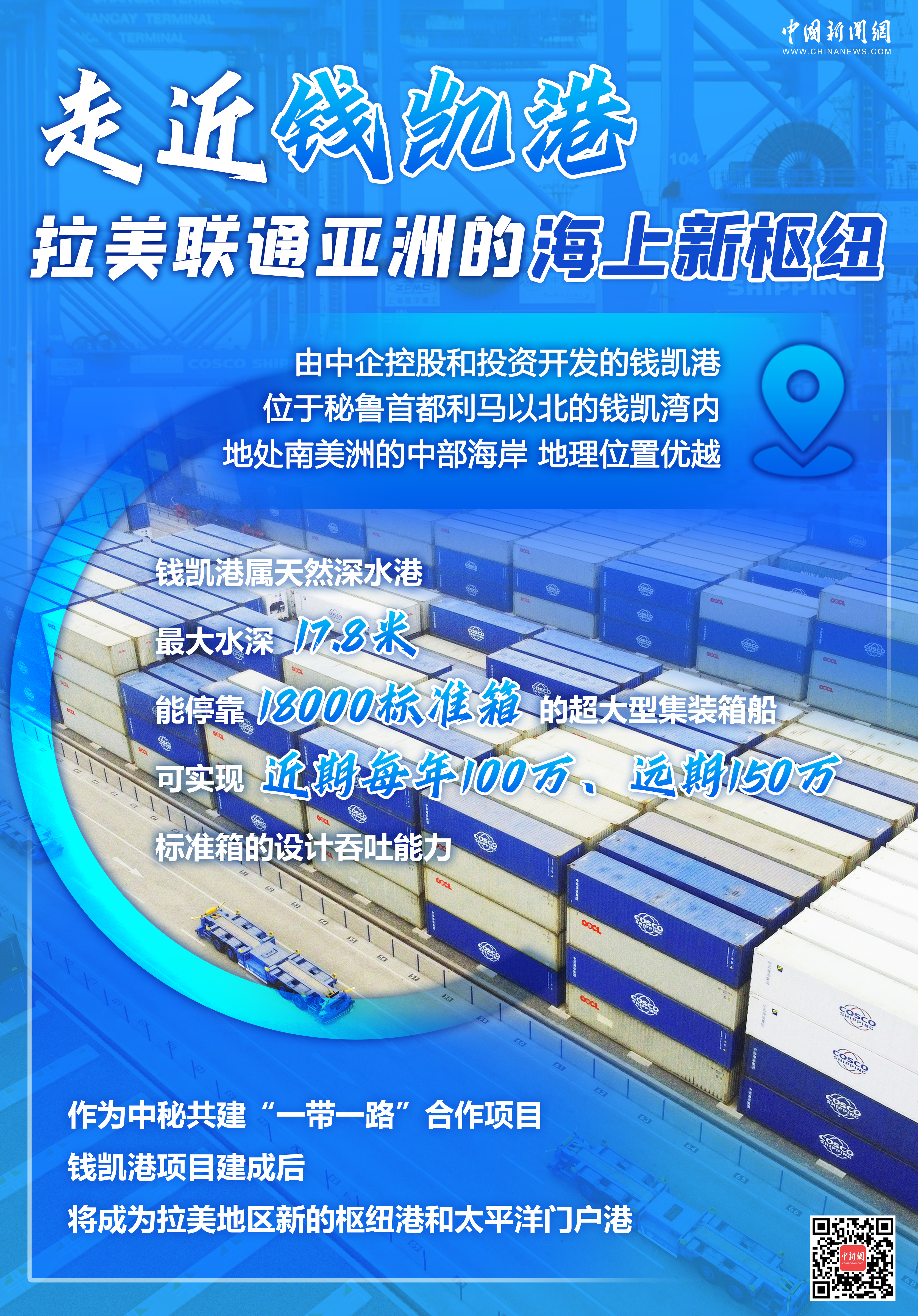 錢凱港項目是中國和秘魯共建“一帶一路”合作項目,建成后將成為拉美地區(qū)新的樞紐港和太平洋門戶港,可大幅縮短秘魯?shù)絹喼薜闹焙綍r間。