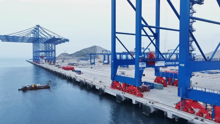 當(dāng)?shù)貢r間11月14日晚,習(xí)近平主席同博魯阿爾特總統(tǒng)在利馬總統(tǒng)府以視頻方式共同出席錢凱港開港儀式。