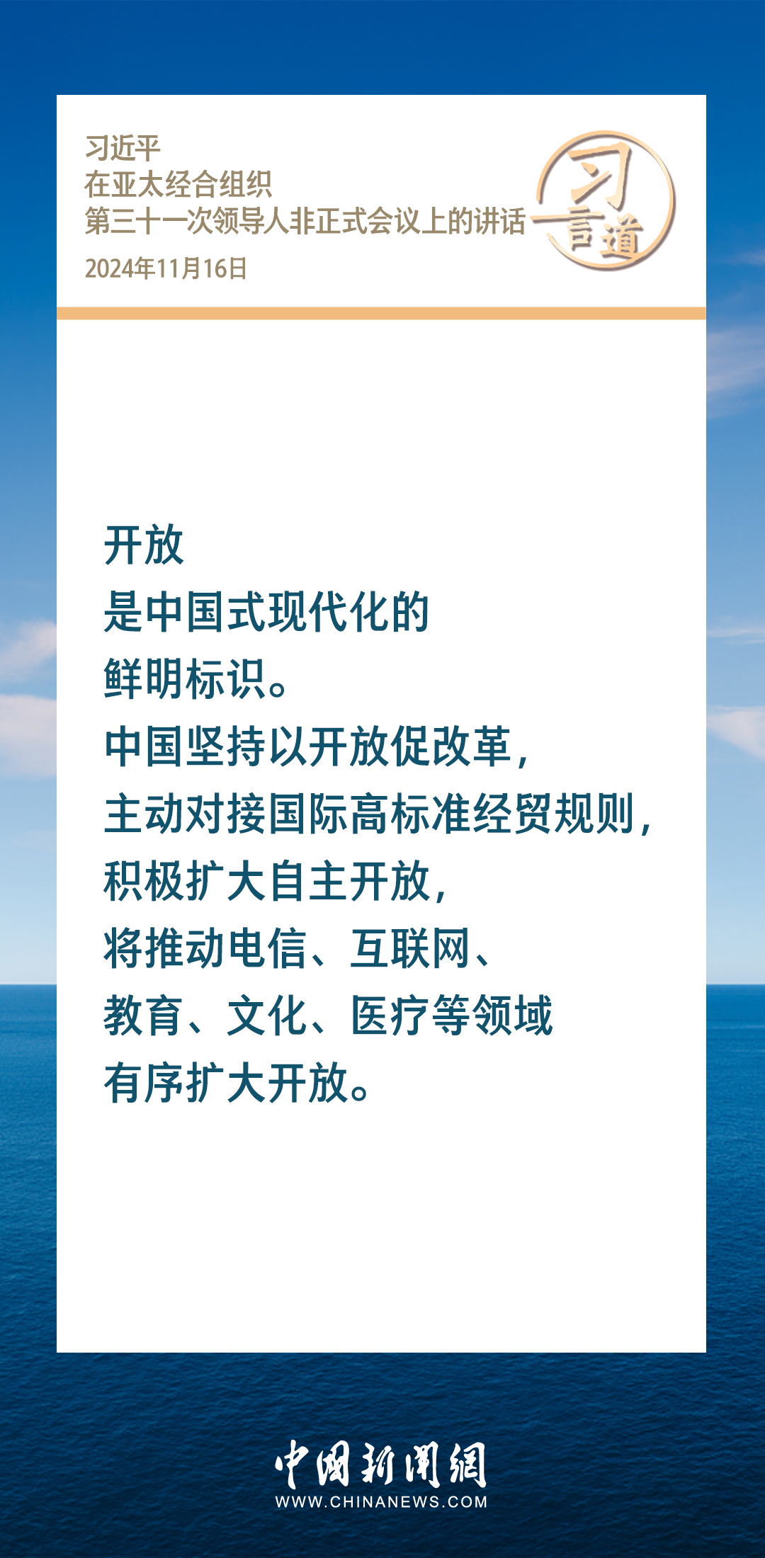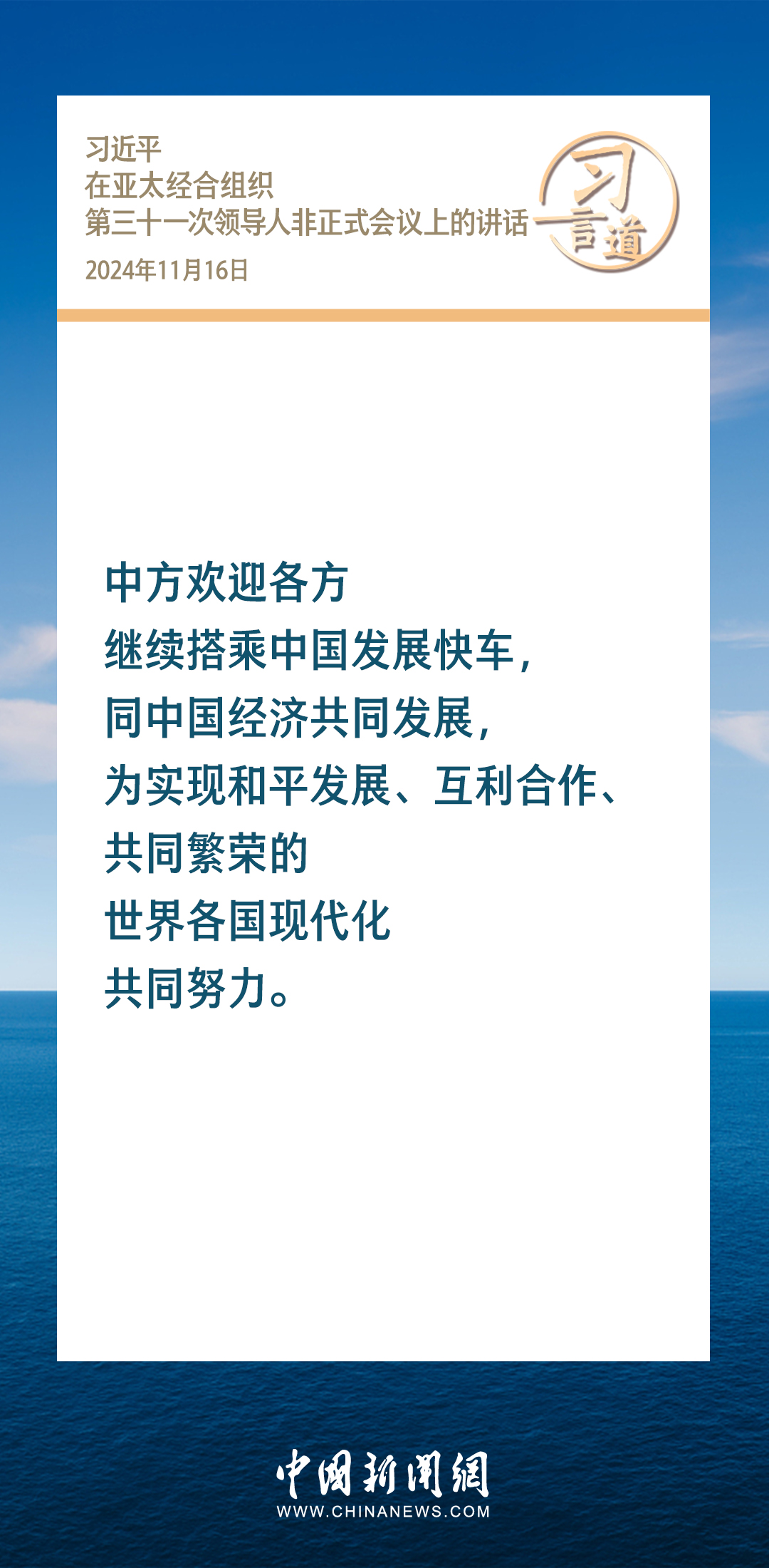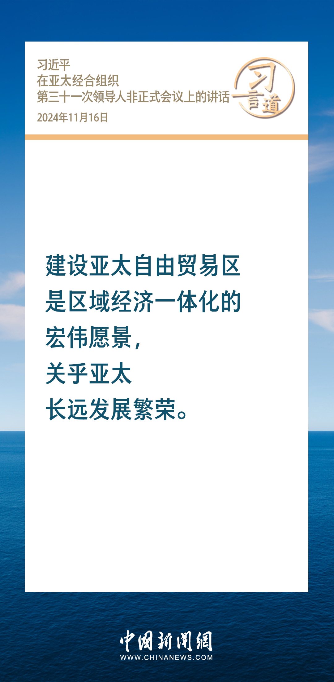當(dāng)?shù)貢r間11月16日,國家主席習(xí)近平出席亞太經(jīng)合組織第三十一次領(lǐng)導(dǎo)人非正式會議并發(fā)表重要講話。習(xí)近平指出——