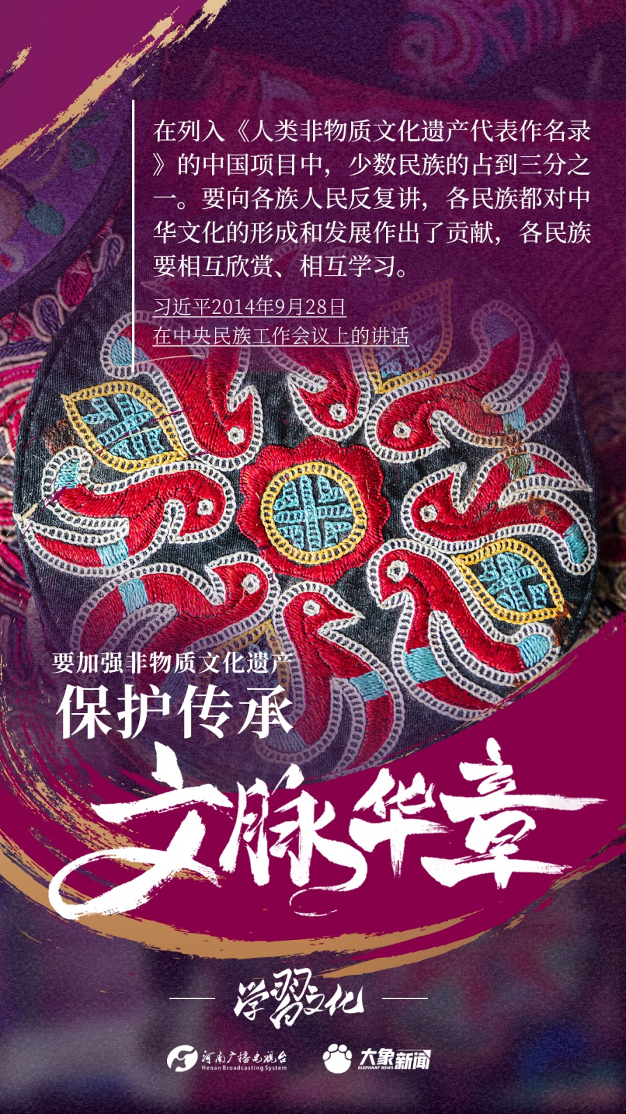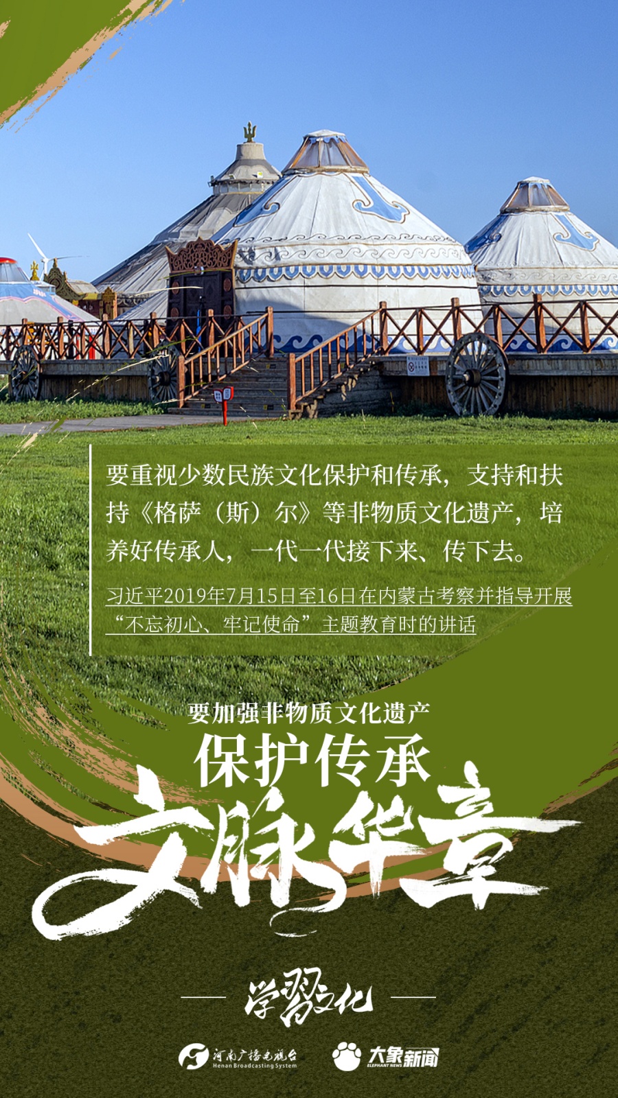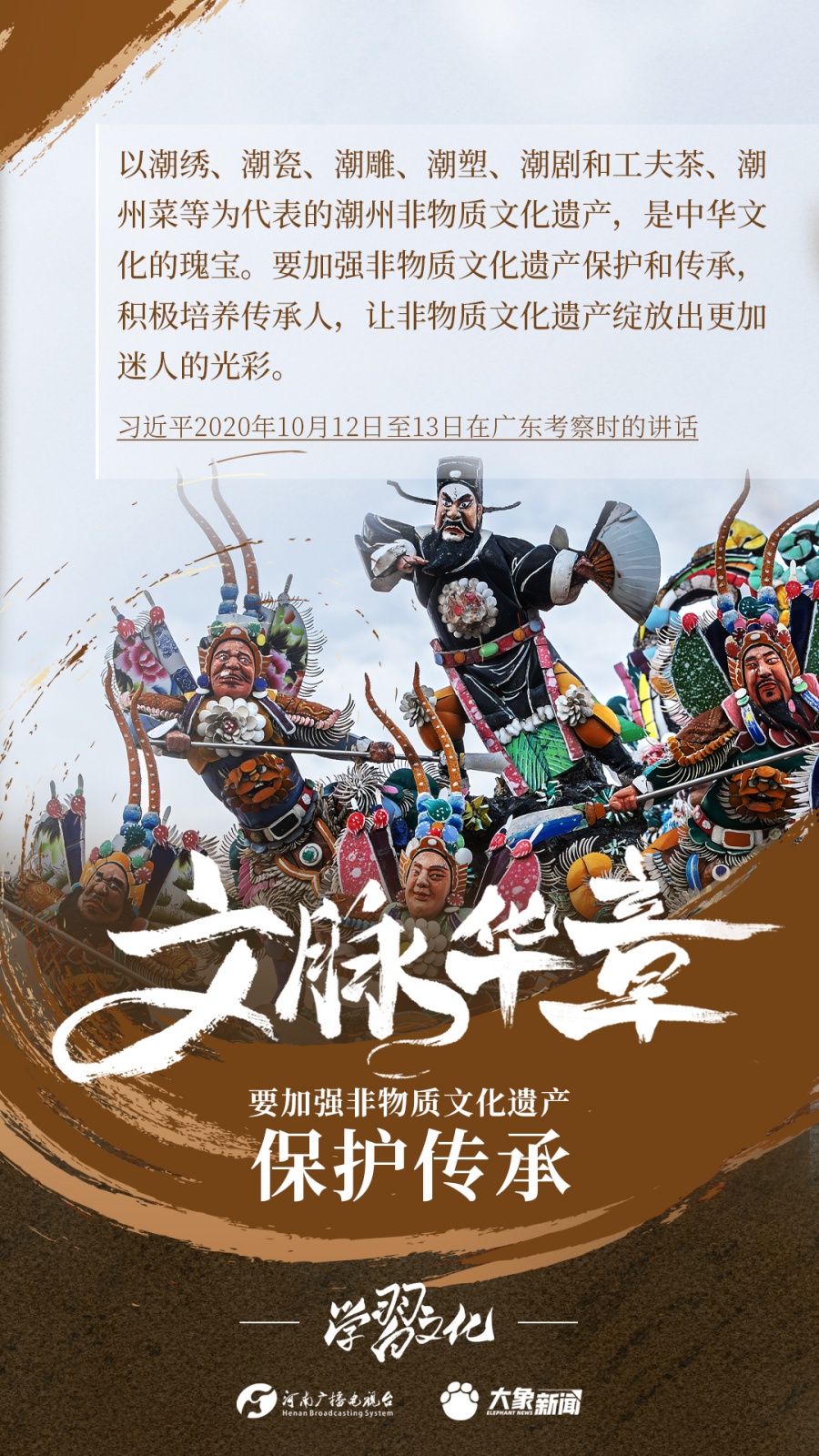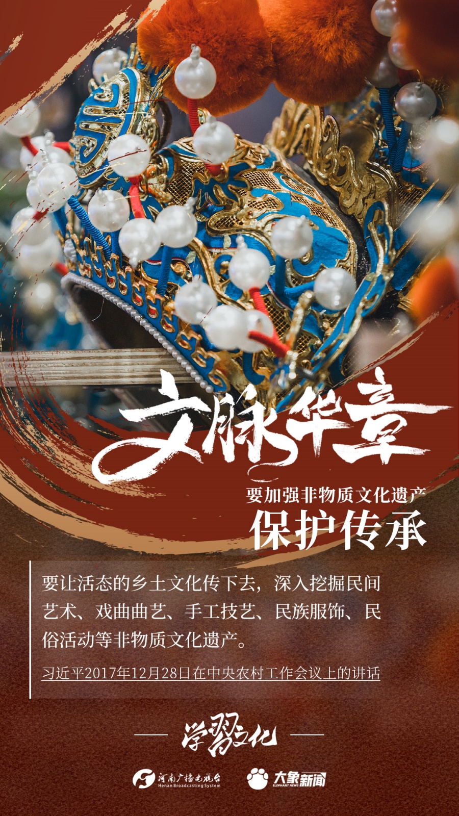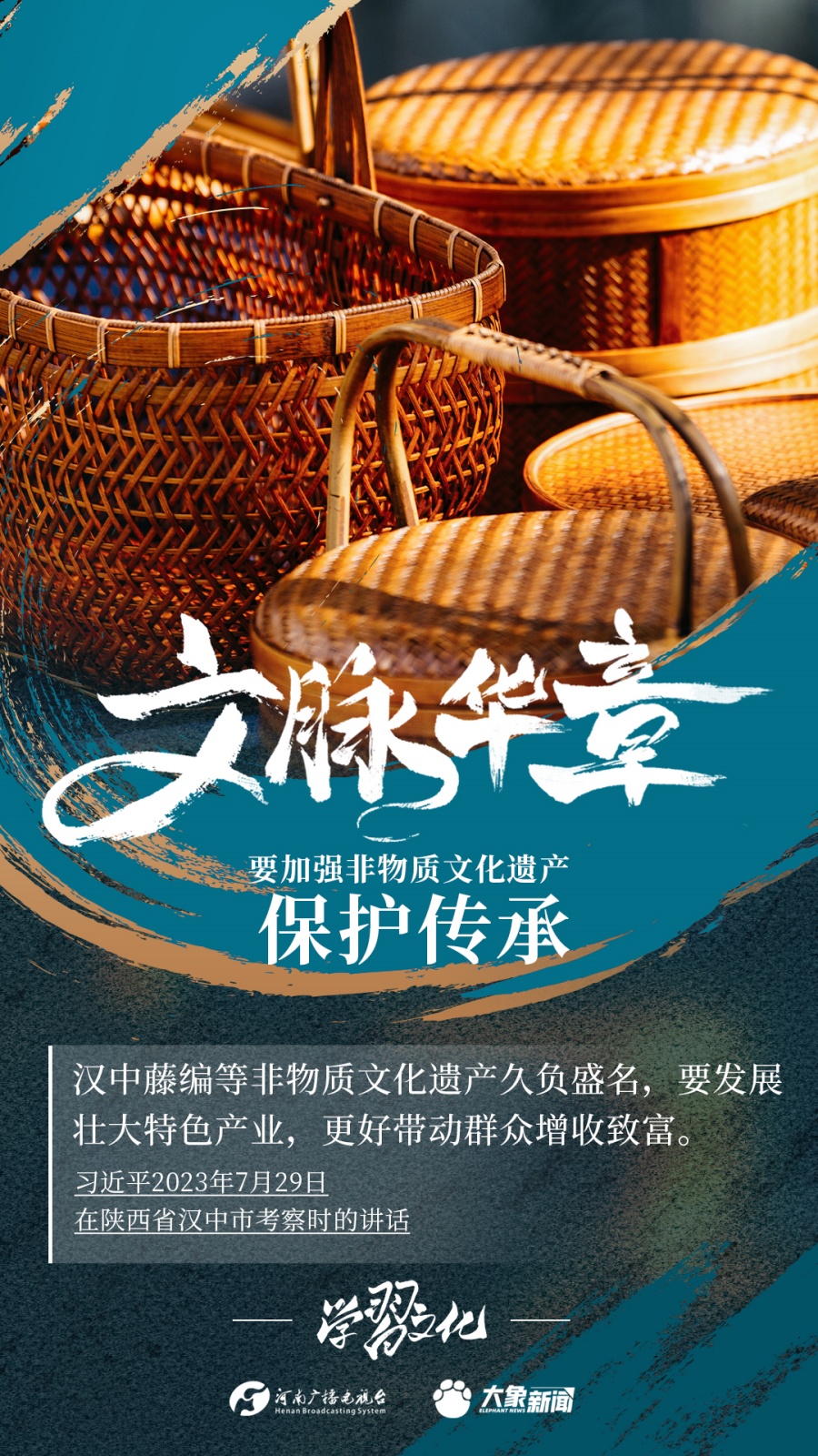 非物質(zhì)文化遺產(chǎn)是中華優(yōu)秀傳統(tǒng)文化的重要組成部分,是中華文明綿延傳承的生動見證,是我國各族人民寶貴的精神財富。習(xí)近平總書記十分關(guān)心非物質(zhì)文化遺產(chǎn)的保護(hù)傳承,多次強調(diào)“要扎實做好非物質(zhì)文化遺產(chǎn)的系統(tǒng)性保護(hù)”“培養(yǎng)好傳承人”等。大象新聞為您梳理,邀您一起學(xué)習(xí)、領(lǐng)悟、踐行。
