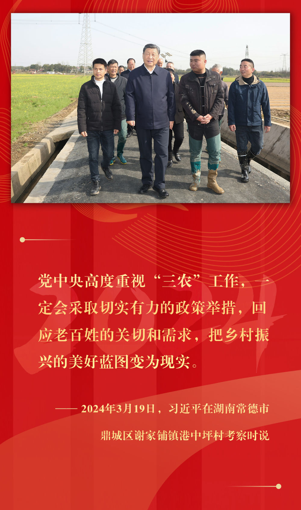 堅(jiān)持城鄉(xiāng)融合發(fā)展、持續(xù)深化農(nóng)村改革、支持強(qiáng)農(nóng)惠農(nóng)富農(nóng)、拓寬農(nóng)民增收渠道、強(qiáng)化農(nóng)業(yè)科技和裝備支撐、確保糧食和重要農(nóng)產(chǎn)品穩(wěn)產(chǎn)保供……2024年,習(xí)近平總書記在基層考察期間,持續(xù)關(guān)注鄉(xiāng)村振興,多次提出重要指示,落子關(guān)鍵處、科學(xué)謀布局,千方百計(jì)推動(dòng)農(nóng)業(yè)增效益、農(nóng)村增活力、農(nóng)民增收入。