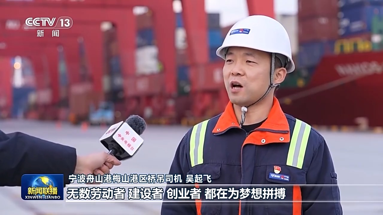 寧波舟山港梅山港區(qū)橋吊司機(jī) 吳起飛:習(xí)近平總書(shū)記在2025年新年賀詞里說(shuō),無(wú)數(shù)勞動(dòng)者、建設(shè)者、創(chuàng)業(yè)者都在為夢(mèng)想拼搏。2024年,我們實(shí)現(xiàn)了寧波舟山港梅山港區(qū)年集裝箱吞吐量超一千萬(wàn)的目標(biāo)。2025年,和團(tuán)隊(duì)的小伙伴們一起,把智慧港口建設(shè)好,為海港的發(fā)展貢獻(xiàn)力量。
