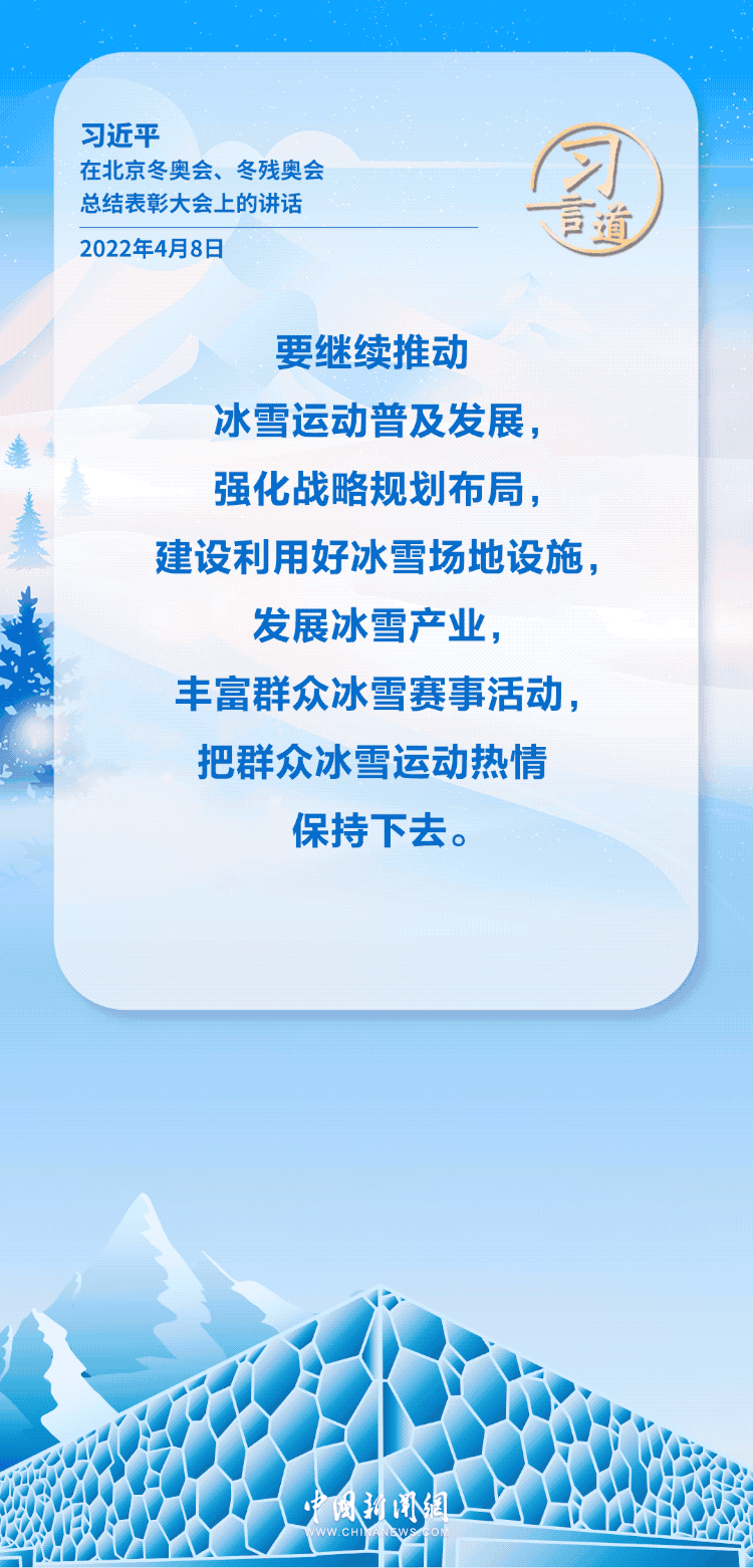 冰雪運(yùn)動(dòng)難度大、要求高、觀賞性強(qiáng),很能點(diǎn)燃人的激情。習(xí)近平總書記多次在不同場合表達(dá)對冰雪運(yùn)動(dòng)的重視,強(qiáng)調(diào)持續(xù)推進(jìn)冰雪運(yùn)動(dòng)發(fā)展。